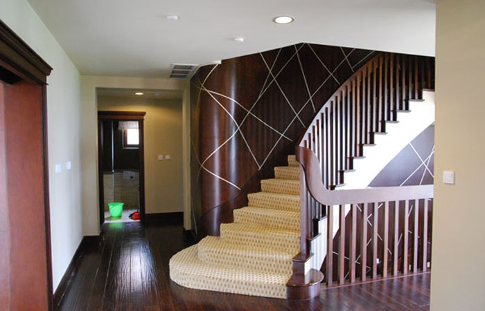 这是市场占有率最大的一种。消费者喜欢的主要原因是木材本身有温暖感,加之与地板材质和色彩容 易搭配,施工相对也较方便。选择木制品做楼梯的消费者,要注意在选择地板时与楼梯地板尺寸的匹配。目前市场上地板的尺寸以90厘米长、10厘米宽为最多,但楼梯地板可以配120厘米长、15厘米宽的地板,这样一格楼梯只要两块普通地板就够了,可少一道接缝,也容易施工和保养。