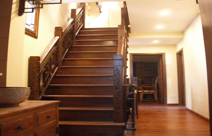 适合在跃层或是别墅等较大的空间中使用,木材本身温暖、自然的质感能适时的烘托高贵、大气的感觉,因此多用于欧式或古典风格的家庭中。